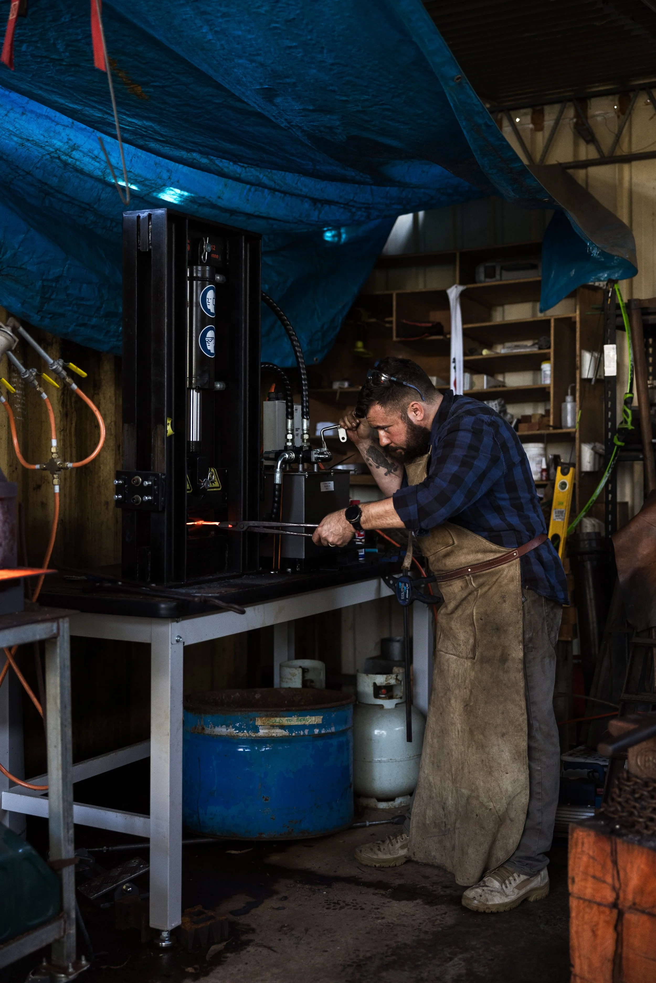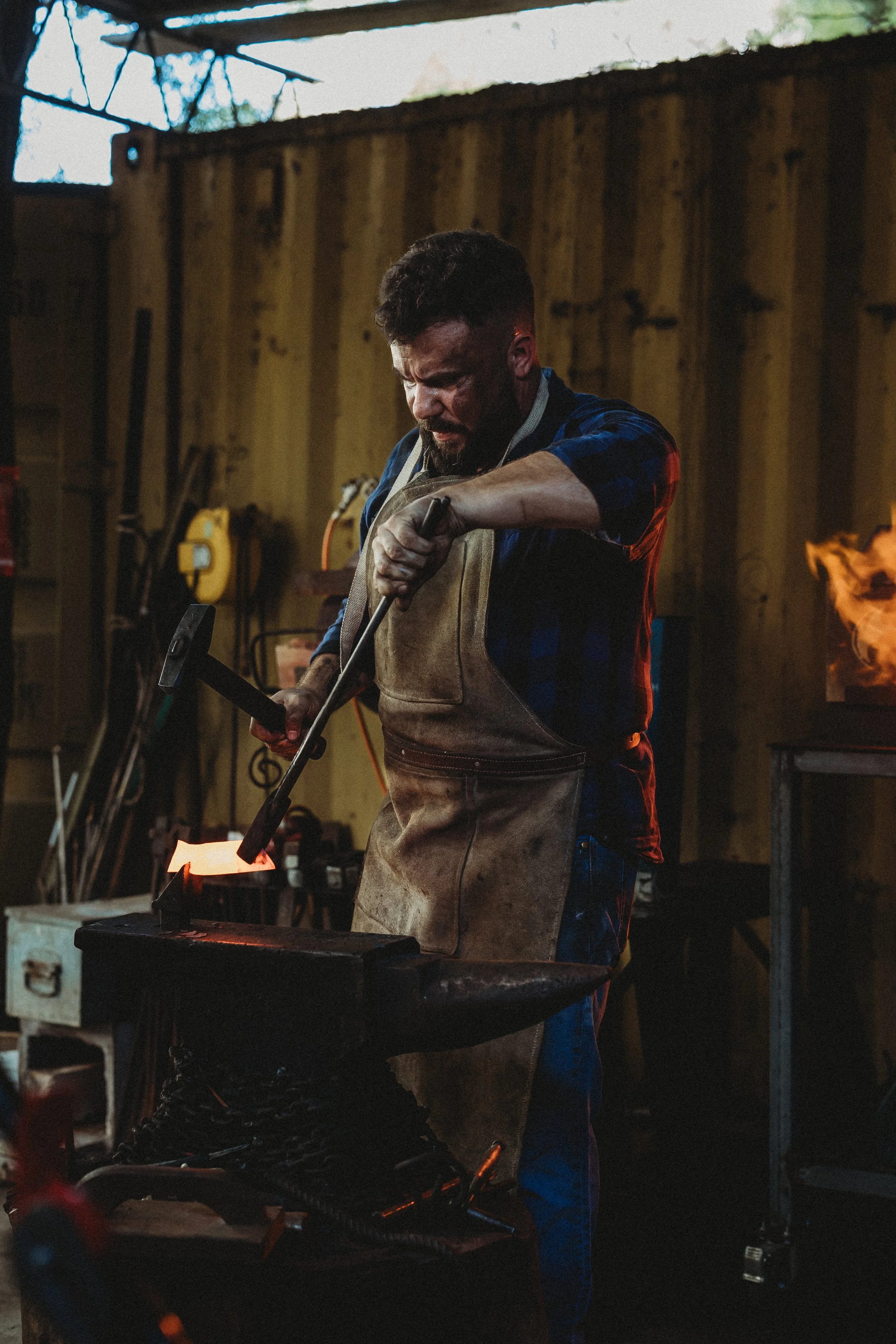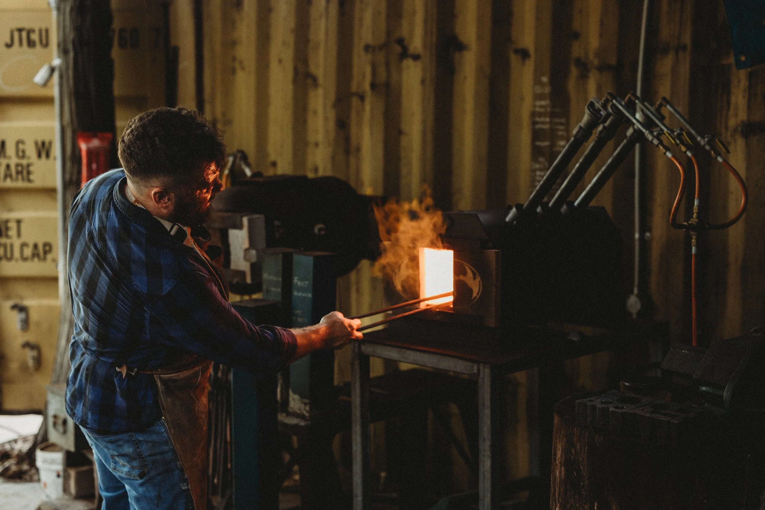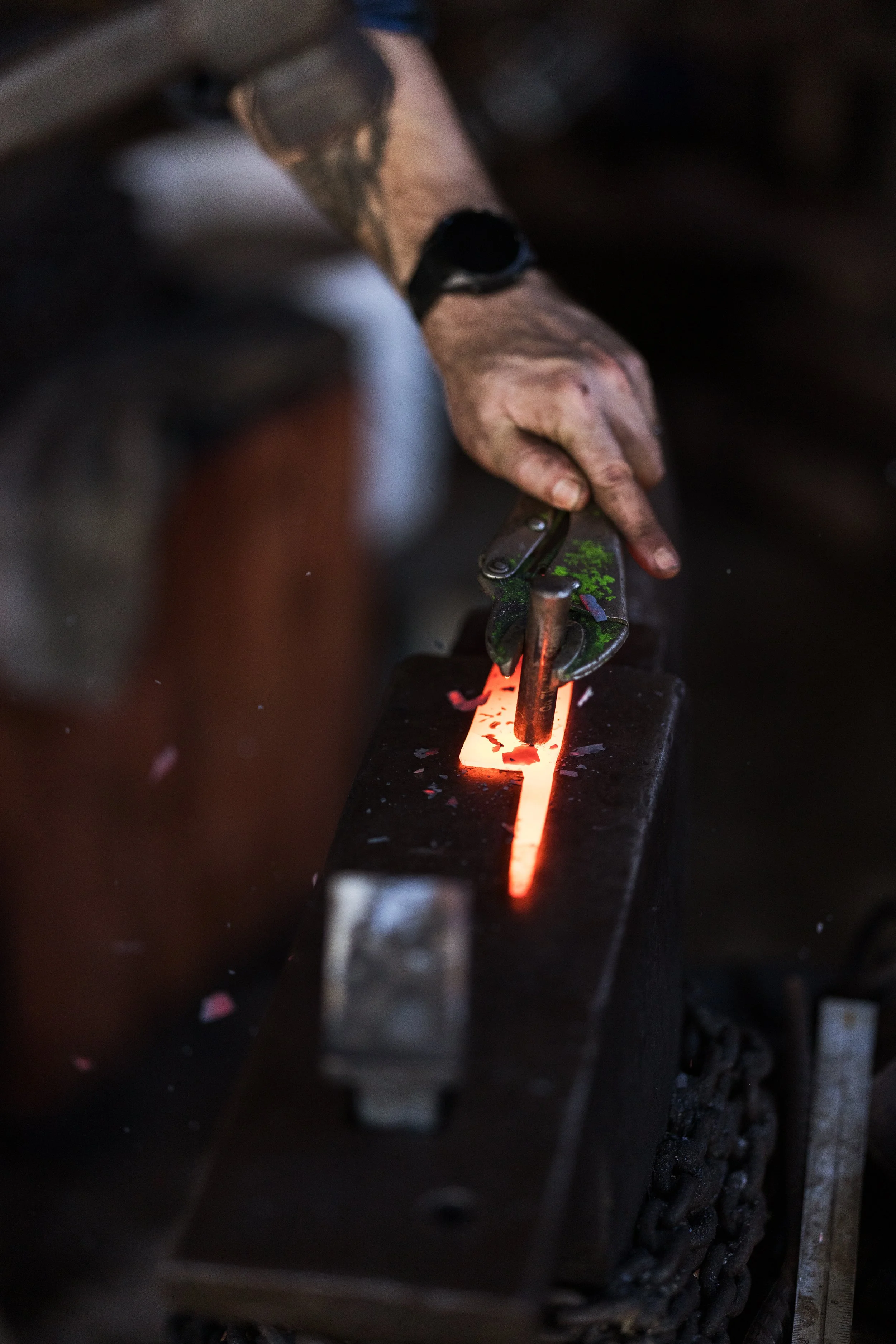 Forges have been used for millenia and often use charcoal or coke for fuels due to the simplicity of their operation. In this era, it isn’t feasible to operate a charcoal forge due to costs. I use a triple burner gas forge to rapidly heat steel to working temperatures ranging between 750° and 1100° celcius. Working with these temperature requires care and attention to avoid damaging the steel.